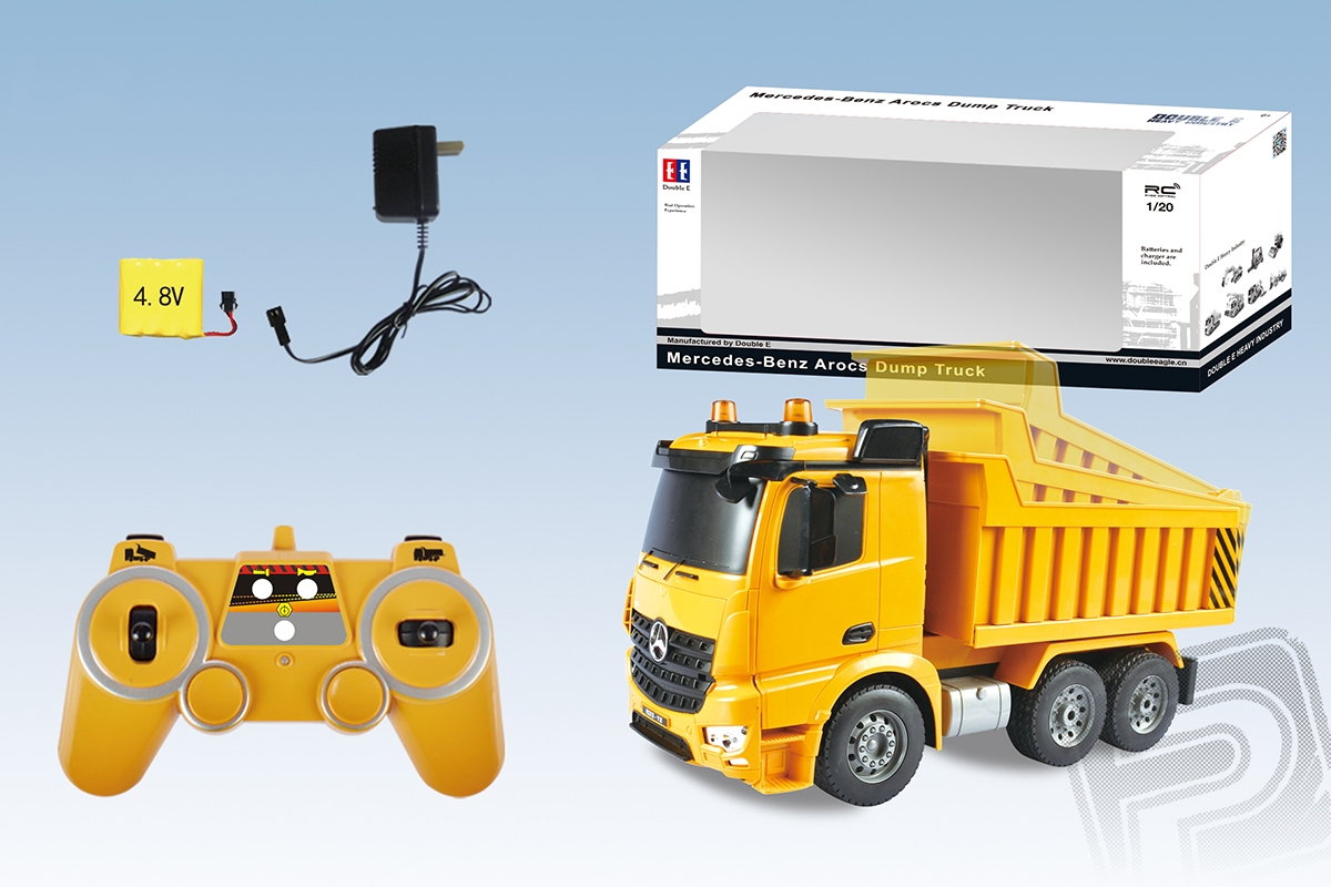 Model nákladního automobilu Mercedes-Benz Arocs v měřítku 1:20 na dálkové ovládání. Disponuje funkcemi jako: jízda vpřed a vzad, zatáčení doleva a doprava, zvednutí a položení korby, předprogramovaná demonstrační jízda, simulovaná světla, simulované zvuky, klakson, ztišení, a další.
