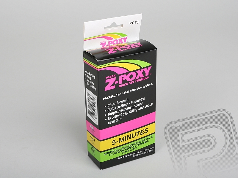 Špičkové 5-min čiré dvousložkové epoxidové lepidlo. Balení: lahvička 237 ml (1/2 P+T). Rychle se vytvrzující dvousložkové epoxidové lepidlo s velmi vysokou pevností odolné vůči palivům a vibracím, skvělý pro lepení zvláště namáhaných spojů, jako jsou přepážky, kořenová žebra, motorové přepážky, přepážky a žebra vlepovaná do laminátových trupů letadel a lodí apod. Po úplném vytvrzení snadno brousitelný. Stárnutím nekřehne.